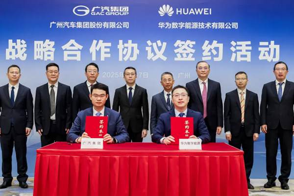 2025年11月7日,广州汽车集团股份有限公司(以下简称“广汽集团”)与华为数字能源技术有限公司(以下简称“华为数字能源”)在广州签署战略合作协议。双方将以提升新能源汽车续航里程、充电效率及整车驾乘体验为目标,在动力域相关系统和整车产品的设计、制造、销售服务等领域展开深入合作。双方通过携手构筑有竞争力、追求极致用户体验的产品,共建产业生态,引领产业高质量发展。