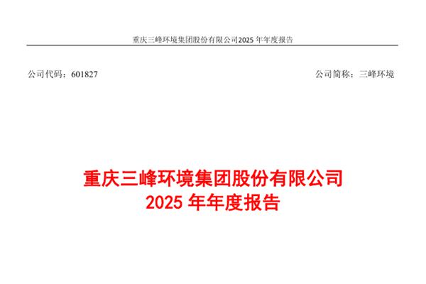 重庆三峰环境集团股份有限公司(简称:三峰环境)近日正式发布《2025年年度报告》。报告期内,三峰环境实现营业收入55.59亿元,同比下降7.21%;归母净利润12.31亿元,同比增长5.38%;基本每股收益0.74元。公司拟每10股派发现金红利2.66元(含税)。