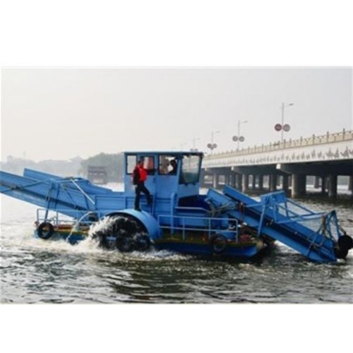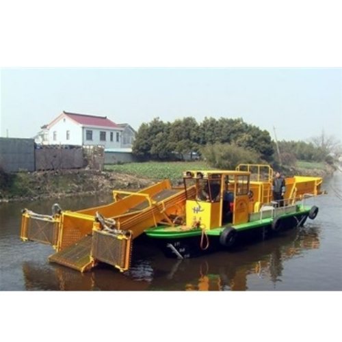 水葫芦打捞船采用不锈钢输送带,能及时过滤因收割水葫芦而带上来的水,且不易生锈,经久耐用,使用寿命长。打捞船航速快,使用先进的全回转舵桨推进系统;收集收割范围广,前舱纵向安装两个切割收集顺轮,能有效的对水草进行环行切割,在切割收集水草的时候,配合横向切割剪刀进行水草收集要。对水面漂浮物、水葫芦、长毛竹、树枝、大树杆等均能收集;操作安全,试航区广;操作简便,自动化程度高。整个打捞过程无需人工参与,安全性非常好,效率是人工打捞的几百倍。打捞船是除草、保洁两用船,该船结构简单,操作方便,环保节能。