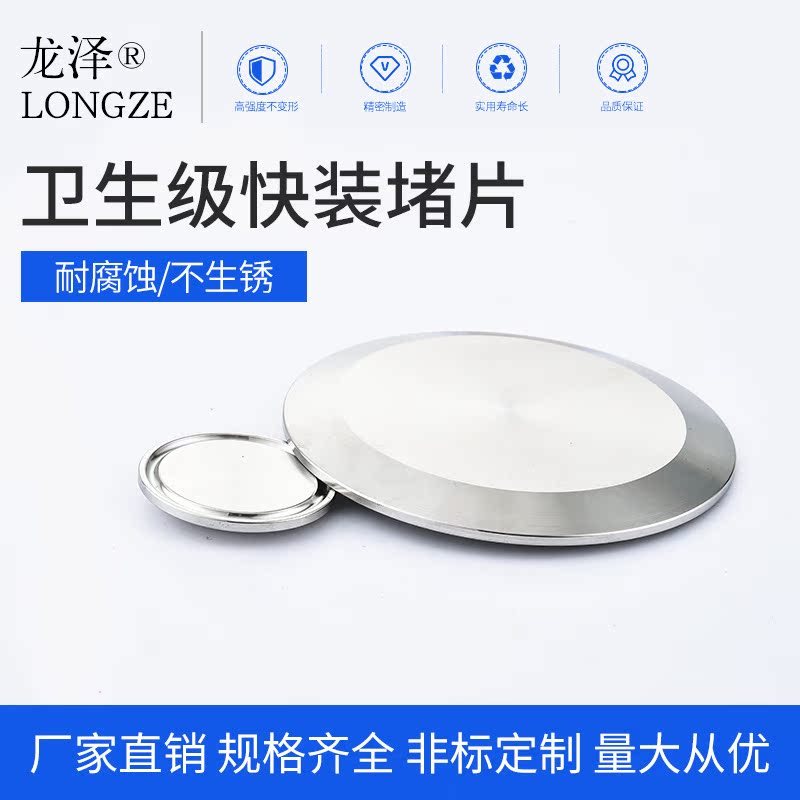 龙泽304/316L不锈钢快装盲板卫生级堵片闷板卡箍快拆盲板标准加厚
