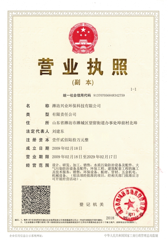 * *潍坊兴业环保科技有限公司位于山东省潍坊市,是本市高新技术企业,专业生产销售医疗污水、屠宰污水,生活污水工业污水处理设备,水处理消毒设备,二氧化氯次氯酸钠发生器,气浮机,加药装置等,承接小型污水处理站设计与施工,资质齐全。
