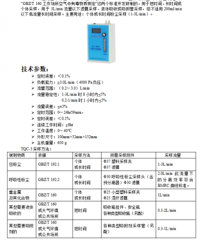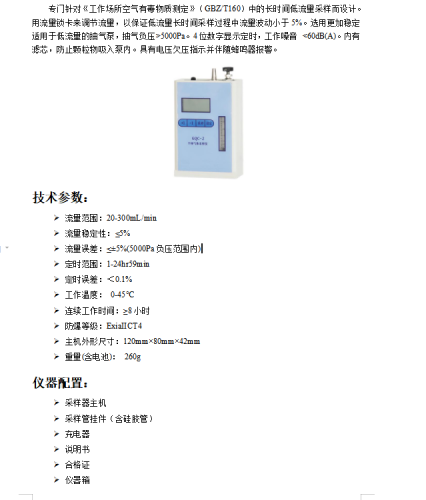 通用型个体空气采样仪 对工作场所空气中有毒物质和粉尘测定