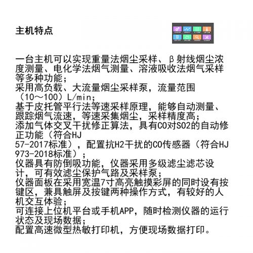 n 独特的系统设计,可综合完成废气污染源颗粒物和多组分烟气成分的测试