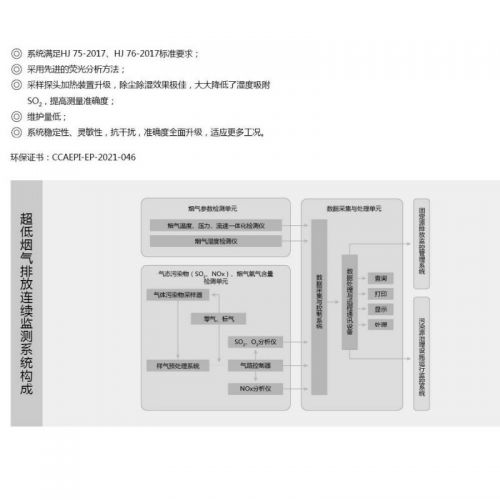 烟气在线监测系统由气态污染物(SO2、NOX、CO、CO2等)监测、烟尘颗粒物浓度监测、烟气参数(烟气流速、烟气温度、烟气压力、烟气含氧量等)监测、数据采集处理与通讯等部分组成。