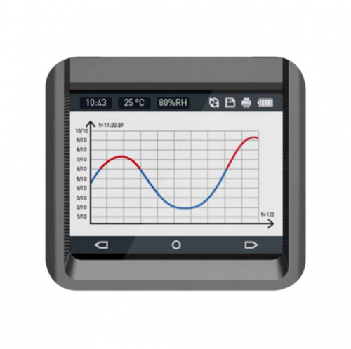 ●2.5寸高清彩屏显示实时浓度、报警、时间、温度、湿度、存储、通信、打印、电量、充电状态等信息,菜单界面采用高清仿真图标显示各个菜单的功能名称