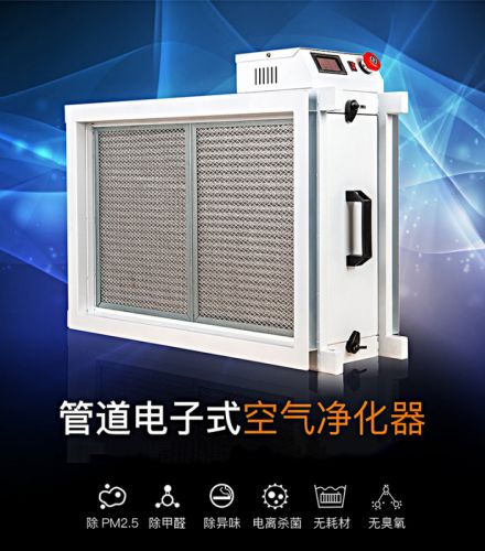 管道式电子空气净化装置由金属过滤网、等离子高压电离器、集尘室组成。采用复合净化方式,高效物理性杀灭空气中的细菌、病毒和微生物,滤除可吸入颗粒物及烟雾等。广泛适用于写字楼,医院,车站等大型公共场所的中央空调送风、回风管道通风系统中,是中央空调管道常用的净化除尘设备。