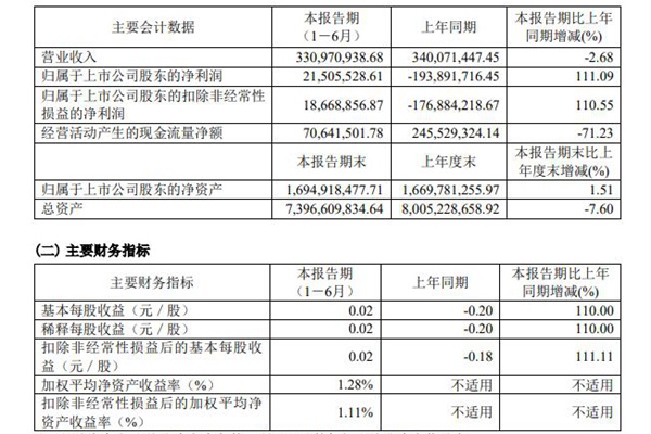 8月9日,博天环境集团股份有限公司(简称:*ST 博天或博天环境)发布2023年半年度报告,报告显示,2023年上半年博天环境实现营业收入 33,097.09 万元,同比减少 2.68%,与去年同期基本持平。归属于上市公司股东的净利润 2,150.55 万元,较去年同期增加 111.09%;归属于上市公司股东的扣除非经常性损益的净利润...
