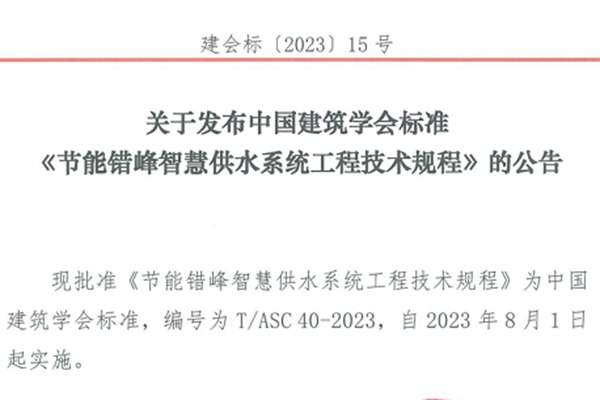 由合肥供水集团有限公司和安徽舜禹水务股份有限公司联合主编的《节能错峰智慧供水系统工程技术规程》(以下简称:规程)近期由中国建筑学会批准发布(标准编号:T/ASC 40-2023),2023年8月1日起实施。 《节能错峰智慧供水系统工程技术规程》适用于新建、扩建和改建的市政、民用与工业建筑、小区生活供水和乡村供水泵站中采用节能错峰智慧...