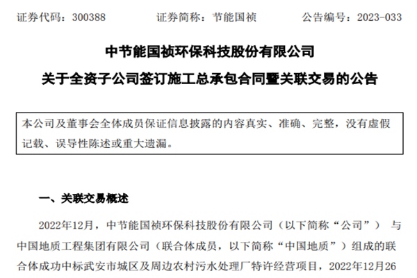 据中节能国祯环保科技股份有限公司(简称:节能国祯)公告,其正式通过了《关于全资子公司签订施工总承包合同暨关联交易的议案》,涉及项目为武安市城区及周边农村污水处理厂特许经营项目。 2023年2月,节能国祯设立了全资子公司中节能国祯环保(武安)有限责任公司,负责武安项目的投资、建设以及运营。后又在4月,与联合体成员中国地质工程集团有限公...