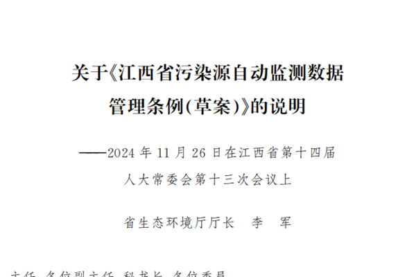 关于公开征求《江西省污染源自动监测数据管理条例(草案)》修改意见的通知 江西省第十四届人大常委会第十三次会议对《江西省污染源自动监测数据管理条例(草案)》(以下简称草案)进行了一审。现将草案及其说明全文公布,公开征求意见。欢迎社会公众通过以下方式提出意见、建议: 1.登录江西人大新闻网,从立法聚焦“征求意见”专...