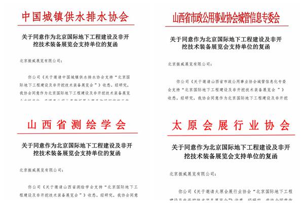 2025年,北京国际地下工程建设及非开挖技术装备展览会,简称北京非开挖展定于3月26日至28日在北京国际展览中心新馆举行,同期将继续举办非开挖产业创新发展大会,欢迎新老朋友继续前来参会、参展、参观! 日前,北京非开挖展组委会收到了来自行业各大协会的回函。行业各大协会回函表示,将继续支持2025年北京非开挖展览会的举办,并组织相关人员...