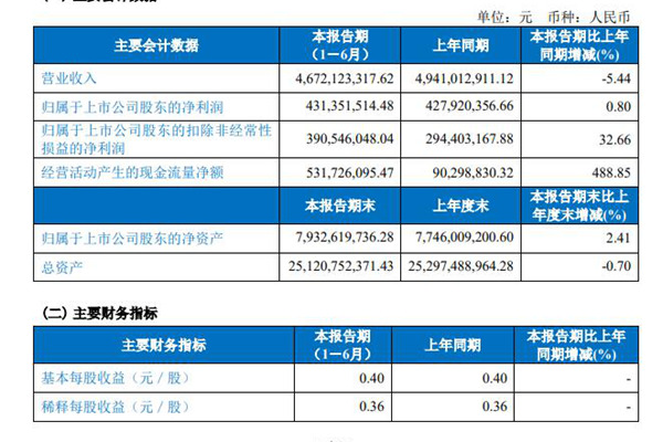 8月24日,福建龙净环保股份有限公司发布《2024 年半年度报告》。图源:龙净环保公告 报告期内,龙净环保实现营业收入 46.72 亿元,实现归属于母公司所有者的净利润 4.31 亿元,比上年同期增长 0.80%;实现扣非后归属于母公司所有者的净利润 3.91 亿元,比上年同期增长 32.66%。经营活动产生的现金流量净额 5.32...