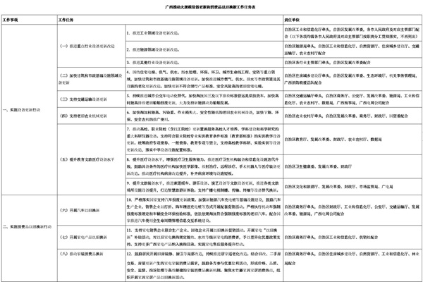 广西壮族自治区人民政府办公厅关于印发《广西推动大规模设备更新和消费品以旧换新工作方案》的通知(桂政办发〔2024〕25号) 各市、县人民政府,自治区人民政府各组成部门、各直属机构: 《广西推动大规模设备更新和消费品以旧换新工作方案》已经自治区人民政府同意,现印发给你们,请认真贯彻执行。 2024年4月28日 (此件公开发布)广西推...