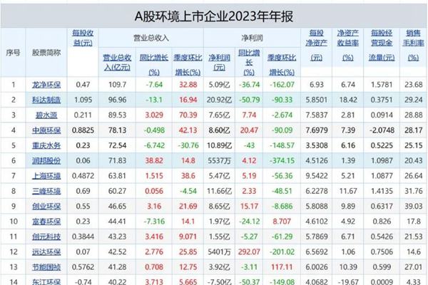 目前,2023年年报业绩进入密集披露期。环境商会不完全统计,截止4月9日,已有57家环境上市公司发布年报,其中,A股32家,港股27家,创业环保、东江环保A股、H股均上市。具体情况如下: 原标题:抢先看!首波57家环境上市企业2023年报出炉...