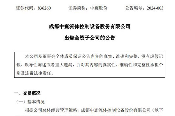 3月18日,中寰股份公告称,根据公司总体经营管理策略,将转让全资子公司成都欧浦特控制阀门有限公司100%股份至四川德普特创新科技有限公司,交易总金额为440万元,转让后公司不再持有欧浦特股份。 本次交易不构成重大资产重组,也不构成关联交易。此次出售资产符合公司整体发展战略的需要,符合公司和全体股东的利益,符合公司长远发展规划,不会对...