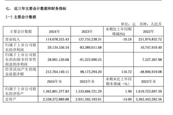 2025年03月27日,大千生态环境集团股份有限公司发布《2024 年年度报告》。图源:大千生态公告 2024年,公司营业收入为114,678,525.43元,同比下降10.24%;归属于上市公司股东的净利润29,134,556.54元,相较上年扭亏为盈。 公司2024年重点工作开展如下: 1、围绕主业,积极拓展多元化市场 公...