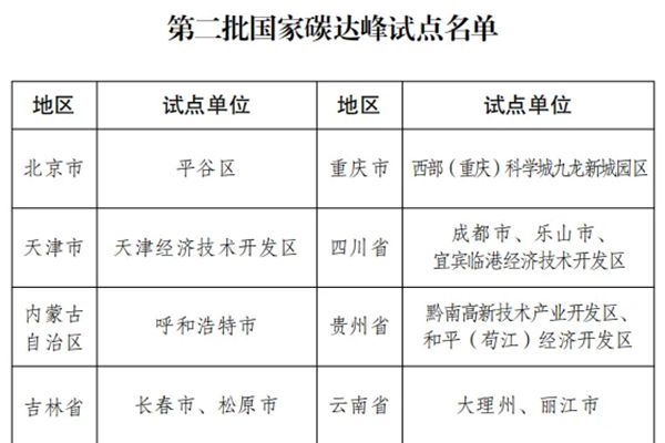 国家发展改革委办公厅关于印发第二批国家碳达峰试点名单的通知 发改办环资〔2025〕248号 各省、自治区、直辖市及计划单列市、新疆生产建设兵团发展改革委,长三角生态绿色一体化发展示范区执委会: 为落实国务院《2030年前碳达峰行动方案》(国发〔2021〕23号)有关部署,按照《国家碳达峰试点建设方案》(发改环资〔2023〕140...