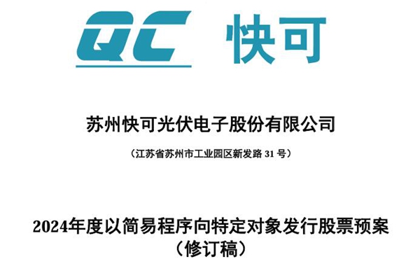 2025年02月15日,苏州快可光伏电子股份有限公司发布《2024年度以简易程序向特定对象发行股票预案(修订稿)》、《关于2024年度以简易程序向特定对象发行股票预案(修订稿)披露的提示性公告》、《2024年度以简易程序向特定对象发行股票方案的论证分析报告(修订稿)》、《关于变更保荐机构后重新签订《募集资金三方监管协议》的公告》、《关...