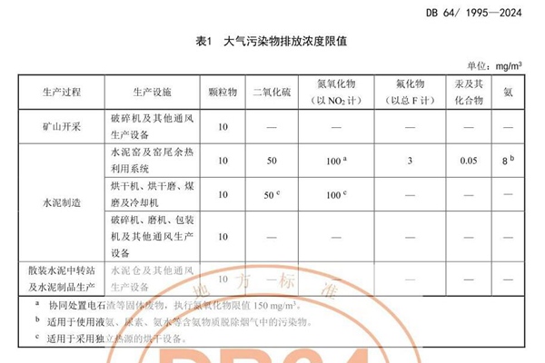 宁夏发布《水泥工业大气污染物排放标准》(DB64/ 1995-2024),自2024年5月4日起实施。 与国家标准《水泥工业大气污染物排放标准》(GB 4915-2013)水泥窑主要污染物特别排放限值相比,颗粒物、二氧化硫、氮氧化物分别收严了50%、50%和68.8%。 水泥工业具有典型的高能耗、高排放特征,是宁夏节能减排关注的重...