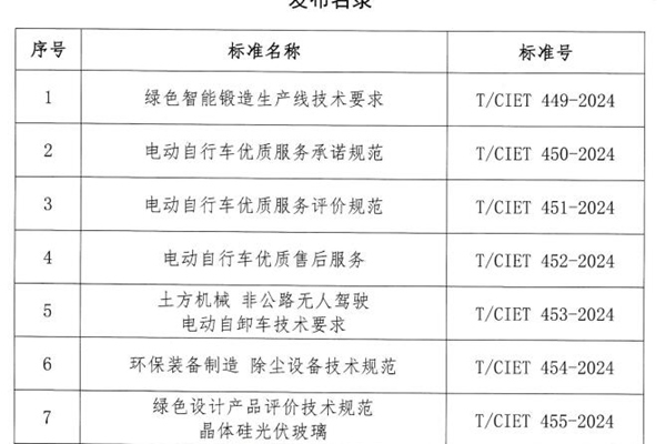 中国国际经济技术合作促进会关于发布《绿色智能锻造生产线技术要求》等七项团体标准的公告 各有关单位: 根据国家标准化管理委员会《团体标准管理规定》,以及《中国国际经济技术合作促进会团体标准制修订管理办法》的有关规定,中国国际经济技术合作促进会现批准发布《绿色智能锻造生产线技术要求》等七项团体标准(见附件),现予以公告。 附件:《绿色智...