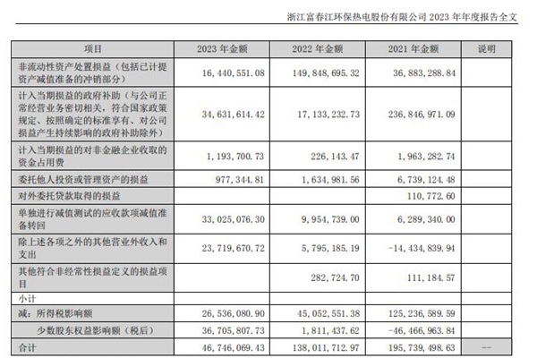 2024年4月9日,浙江富春江环保热电股份有限公司公布2023 年年度报告。报告显示,公司实现营业收入44.41亿元,同比下降7.32%;归属于上市公司股东的净利润1.97亿元,同比下降24.12%;归属于上市公司股东的扣除非经常性损益的净利润1.498亿元,同比增长23.83%。 报告称,富春环保是国内大型的循环经济型环保公用企业...