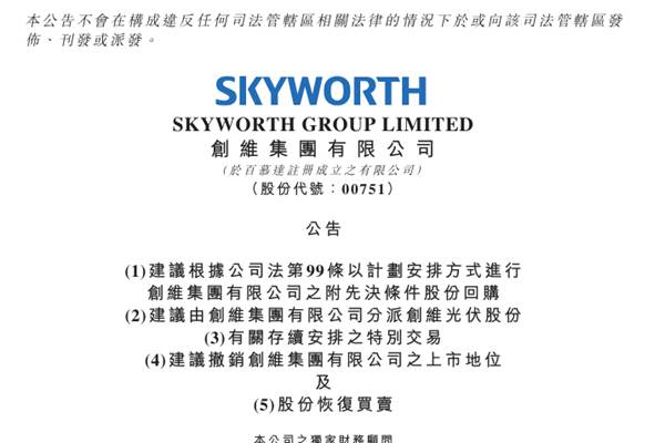 创维集团有限公司(简称:创维集团)近日公告称,公司将向联交所申请以介绍方式将深圳创维光伏科技有限公司(下称“创维光伏”)于联交所上市及买卖。由于建议以介绍方式进行创维光伏上市,故创维光伏上市将不涉及公开发售创维光伏股份。 于2026年1月4日,创维集团董事会议决,在满足先决条件的前提下,提出该建议,内容包括:...