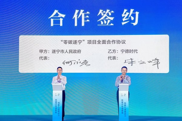 2025年9月22日,中外知名企业四川行·遂宁市投资推介会暨项目签约仪式在成都举行。遂宁市委常委、常务副市长何永宏与四川时代总经理朱云峰代表双方签署零碳战略合作协议。双方将围绕“存量供应、增量产能、关联投资、零碳基建”4个方向,巩固和加强产业链供应链合作,助力遂宁成为全球新能源产业供应链配套主阵地...