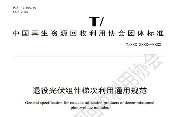 近日,由中国再生资源回利用协会批准立项的团体标准《退役光伏组件梯次利用通用规范》(立项编号:2023TB-ZD-02)已经完成征求意见稿,现公开征求意见。征求意见时间为2023年11月6日至2023年11月19日。 本文件规定了退役光伏组件梯次利用产品的应用场景、技术要求、试验方法、修复、检验规则、标志、包装、运输和储存,适用于晶体...