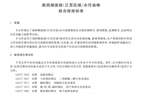 2023年9月28日,《南四湖流域(江苏区域)水污染物综合排放标准》(DB32/4576-2023)发布,文件将于2024年4月1日起施行,该文件由江苏省升天环境厅提出并归口。文件规定了南四湖流域(江苏区域)水污染物排放的主要控制项目、排放限值、监测要求、达标判定以及实施与监督等内容,适用于南四湖流域(江苏区域)除农村生活污水处理设施...