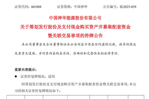 8月1日,中国神华能源股份有限公司(简称:中国神华)公告称,公司收到控股股东国家能源投资集团有限责任公司(下称“国家能源集团”)的《关于筹划重大事项的通知》,初步考虑拟由公司发行股份及支付现金购买国家能源集团持有的煤炭、坑口煤电以及煤制油煤制气煤化工等相关资产并募集配套资金。 据悉,本次交易涉及重组标的具体包...