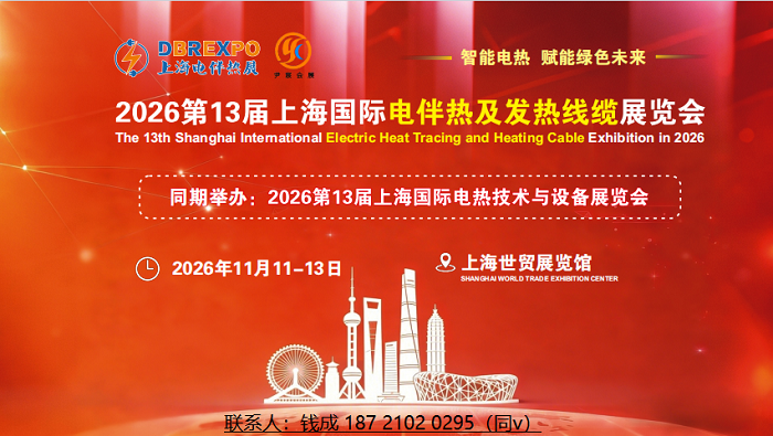 2026 3届上海国际电伴热及发热线缆展览会 The 13th Shanghai International Electric Heat Tracing and Heating Cable Exhibition in 2026 时间:2026年11月11-13日地点:上海世贸展览馆 同期举办:2026 3届上海国际电热技术与设备展览会 ...