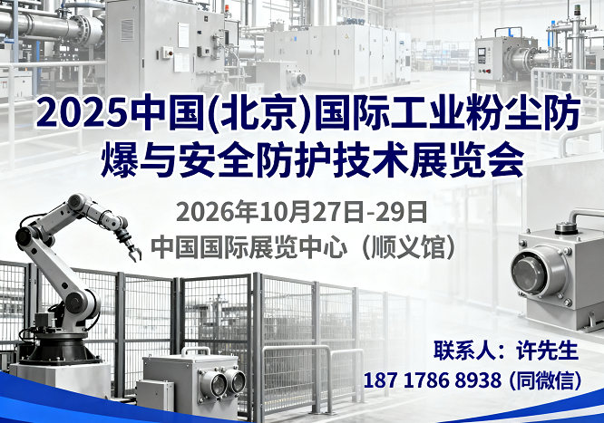 2026中国(北京)国际工业粉尘防爆与安全防护技术展览会 时间:2026年10月27日-29日 地 点:中国国际展览中心(顺义馆) 【前言】 粉尘爆炸一直是工业生产领域难以预防和控制的灾害性事故之一,尤其是2014年8.2昆山特大粉尘爆炸事故,和2015年中国台湾6.27八仙乐园彩色粉尘爆燃事故再次引起全社会对粉尘爆炸危害的警觉,这些工业...