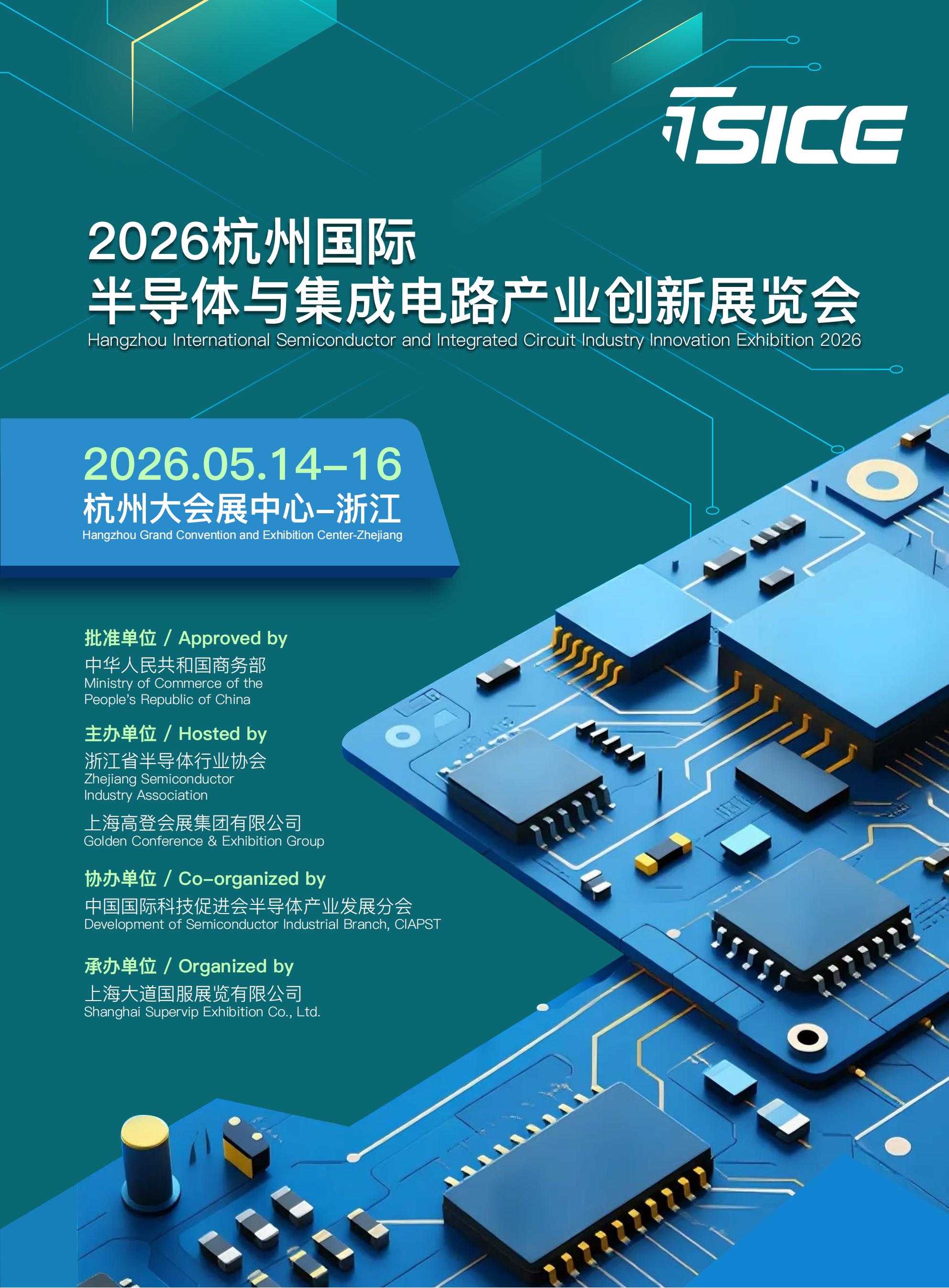 2026杭州国际半导体与集成电路产业创新展览会 Hangzhou International Semiconductor and Integrated Circuit Industry Innovation Exhibition 2026 2026.05.14-16 杭州大会展中心-浙江 批准单位 中国商务部 主办单位 浙江省半导体行...