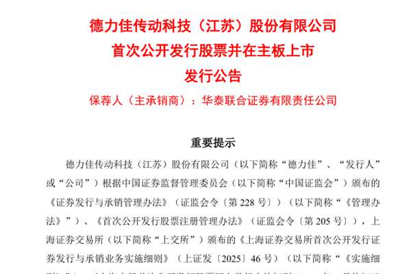 11月7日,风电行业齿轮箱头部企业德力佳传动科技(江苏)股份有限公司(简称:德力佳)在上交所主板上市,股票代码为603092。德力佳发行价格为46.68元/股,发行数量为4000.01万股。上市首日,德力佳高开107.7%,开盘价为每股96.94元,上午收盘价为76.74元/股,涨幅为64.40%,市值为307亿元。 据悉,德力佳自...