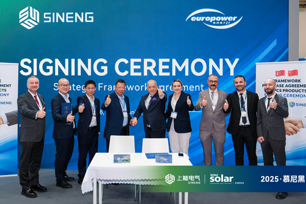 近日,在2025 Intersolar Europe展会现场,上能电气股份有限公司(以下简称“上能电气”)与土耳其知名新能源公司Europower Enerji(以下简称“Europower”)正式签署框架合作协议,进一步加速对土耳其及欧亚储能市场的开拓与布局。 Europower总部...