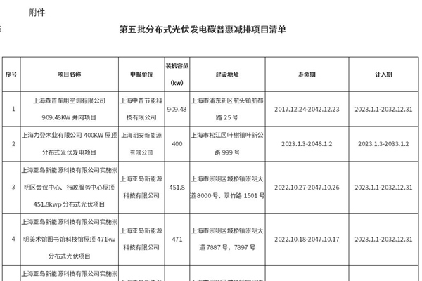 上海市生态环境局关于上海中普节能科技有限公司、上海玥安新能源有限公司等分布式光伏发电减排项目申请和项目减排量首次签发的公示 为加快推进我市碳普惠体系建设,积极引导绿色低碳生活方式,根据《上海市碳普惠管理办法(试行)》《上海市碳普惠减排项目和减排场景开发与申请指南(试行)》等有关文件,我局对上海中普节能科技有限公司、上海玥安新能源有限公司...