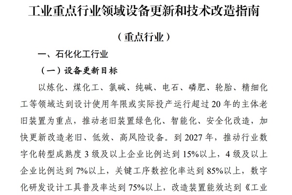 工业和信息化部办公厅关于印发工业重点行业领域设备更新和技术改造指南的通知 各省、自治区、直辖市及计划单列市、新疆生产建设兵团工业和信息化主管部门,有关中央企业: 为贯彻落实党中央、国务院决策部署,加强对推动工业领域设备更新和技术改造工作的指导,依据《推动大规模设备更新和消费品以旧换新行动方案》和《推动工业领域设备更新实施方案》,工业和...