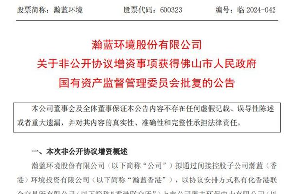 瀚蓝环境股份有限公司(简称:瀚蓝环境)公告称,公司本次非公开协议增资事项于2024年8月7日获得佛山市人民政府国有资产监督管理委员会批复同意,并经公司2024年第一次临时股东大会审议通过。至此,瀚蓝环境私有化上市公司粤丰环保电力有限公司再进一步。 申明:本站发布此信息的目的在于传播更多信息,与本站立场无关。并且郑重提示所有阅读者,股...