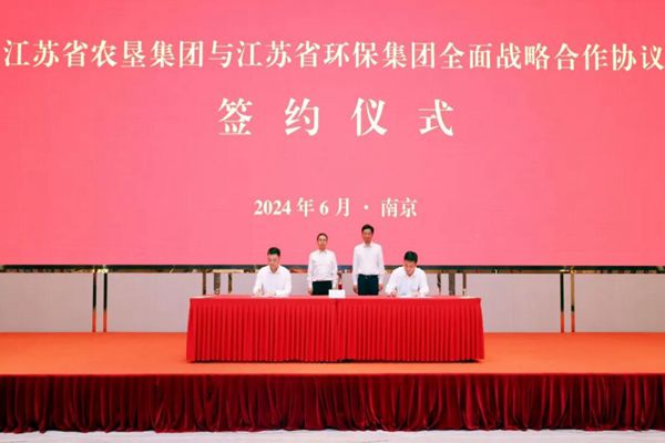 为以实际行动践行习近平生态文明思想和新发展理念,支撑服务江苏打造发展新质生产力重要阵地,6月11日上午,江苏省环保集团与省农垦集团举行全面战略合作签约仪式。省环保集团党委书记、董事长方斌斌,省农垦集团党委书记、董事长吴本辉出席签约仪式并讲话。省环保集团总经理、党委副书记魏爱春,省农垦集团总经理、党委副书记姜建友分别代表双方签署了战略合...