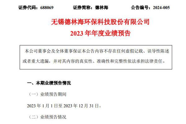 近日,无锡德林海环保科技股份有限公司(简称:德林海)发布《2023年年度业绩预告》,预计全面实现归属于母公司所有者的净利润为-1,680.00 万元到1,120.00万元,与上年同期(法定披露数据)相比,将出现亏损。归属于母公司所有者扣除非经常性损益后的净利润为-4,906.89 万元到4,346.89万元。 德林海表示,本期业绩变...