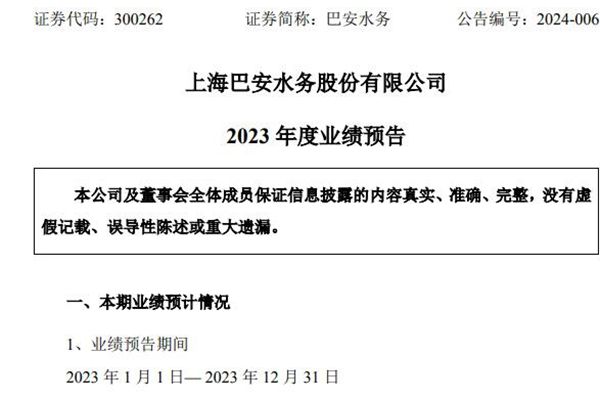 上海巴安水务股份有限公司(简称:巴安水务)近日发布《2023年度业绩预告》,预计实现归属于上市公司股东的净利润盈利150万元— 200万元,比上年同期增长100.39% - 100.52%;扣除非经常性损益后的净利润亏损1,500万元 — 2,200万元,比上年同期增长95.47%-93.36%。 报告期内,...
