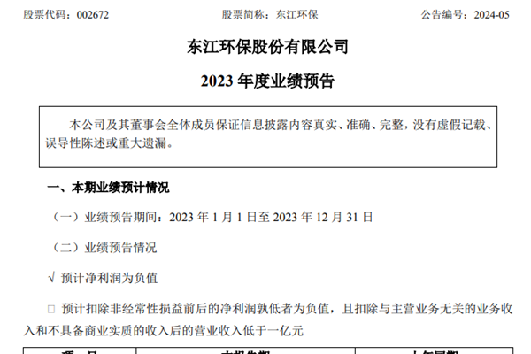 东江环保股份有限公司创立于1999年,是一家省属国有控股企业。东江环保业务涵盖了工业和市政固体废物的资源化利用与无害化处理、稀贵金属回收领域,配套发展水治理、环境工程、环境检测等。2023年1月1日-12月31日,东江环保预计归属于上市公司股东的净利润为-72000万元~-66000万元,比上年同期下降43.49%~31.53%;预计...