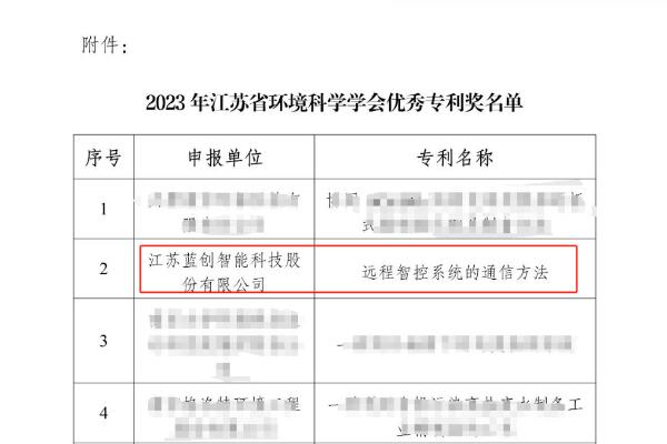 为推动绿色技术创新,激励江苏省生态环境领域知识产权高质量创造,鼓励和宣传为生态环境领域发展做出突出贡献的专利权人,江苏省环境科学学会开展了首届江苏省环境科学学会优秀专利奖评选活动,江苏蓝创智能科技股份有限公司(以下简称“蓝创智能”)的远程智控系统的通信方法(专利号:ZL201610)喜获“优秀专利&...