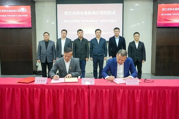12月26日,北控水务集团与晋江水务集团的合作框架协议签约仪式在晋江市政府举行。签约仪式由晋江市人民政府副市长王也夫主持。晋江市委常委,市政府常务副市长吴志朴,市水务集团党委书记、董事长洪凤腾,市水务集团党委副书记、总经理黄传标;北控水务集团南部大区厦漳泉区域公司总经理卢庶,南部大区高级总监黄贵新,泉州安平供水有限公司总经理张钦波,以...