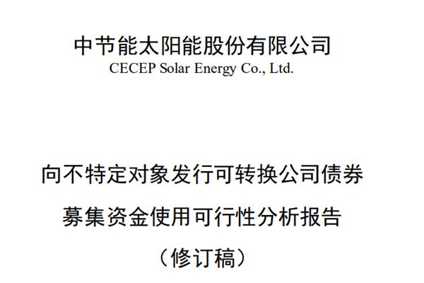 10月10日晚间,中节能太阳能股份有限公司(简称:太阳能)发布公告称,拟对本次可转债发行方案进行调整,即删减募投项目中的“中节能林城260兆瓦光伏发电项目”,并将本次可转债发行规模调减至不超过49.14亿元;同时补充流动资金金额及募投相关数据亦相应调减。 作为央企中国节能环保集团旗下唯一的太阳能业务上市公司,...