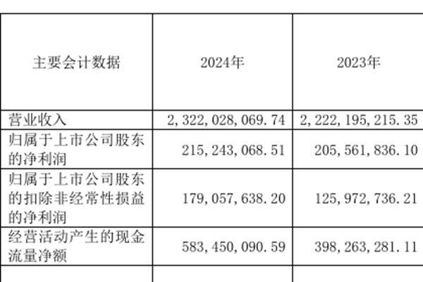 钱江水利开发股份有限公司(简称:钱江水利)近日发布《2024 年年度报告》。报告期内,钱江水利实现营业收入23.22亿元,同比增长4.49%;归属上市公司股东的净利润2.15亿元,同比增长4.71%;扣除非经常性损益后的归属于上市公司股东的净利润1.79亿元,同比增长42.14%;基本每股收益0.43元。图源:钱江水利公告 2024...