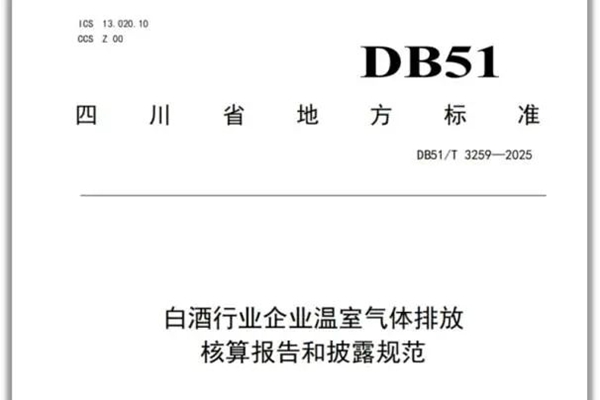 2025年3月19日,四川省市场监督管理局公告发布四川省首个工业企业温室气体排放核算和信息披露地方标准《白酒行业企业温室气体排放核算报告和披露规范》(DB51/T 3259-2025),自2025年4月19日起实施。 该标准由四川省生态环境厅提出、归口、解释并组织实施,由四川省环境政策研究与规划院、天府永兴实验室、宜宾五粮液股份有限...
