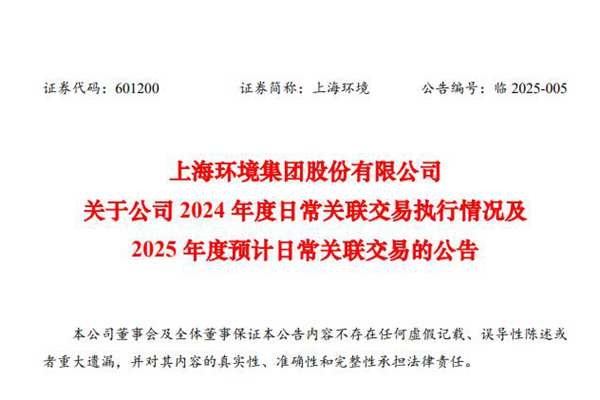 上海环境集团股份有限公司(简称:上海环境)近日发布《关于公司2024年度日常关联交易执行情况及2025年度预计日常关联交易的公告》。 上海环境认为,公司关联方因项目委托管理、油品销售、物业管理、办公楼租赁、工程咨询、污泥、污水、炉渣、渗沥液、飞灰处置、保安保洁等业务形成了日常持续性关联交易。其中主要的交易涉及了环境保护、项目管理等专...