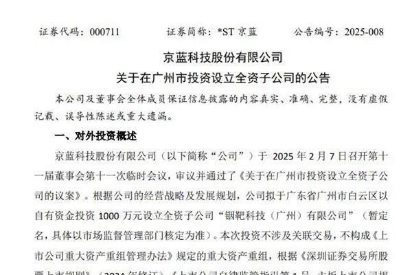 京蓝科技股份有限公司(简称:*ST京蓝)近日公告称,公司拟在深圳市、广州市设立全资子公司,各投资 1000 万元,名称分别为“铟靶科技(深圳)有限公司”“铟靶科技(广州)有限公司”。 经营范围上,两家新公司将主要从事电子专业材料研发;电子专用材料销售;金属材料销售;金属制品销售;资源再...