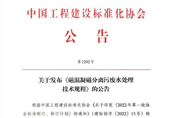 日前,根据中国工程建设标准化协会《关于印发的通知》(建标协字[2022]13号)的要求,由中建环能科技股份有限公司、亚太建设科技信息研究院有限公司主编,中国市政工程华北设计研究总院有限公司、中国市政工程西北设计研究院有限公司、中国市政工程中南设计研究总院有限公司等14家单位参编的团体标准《磁混凝磁分离污废水处理技术规程》正式发布,编号...